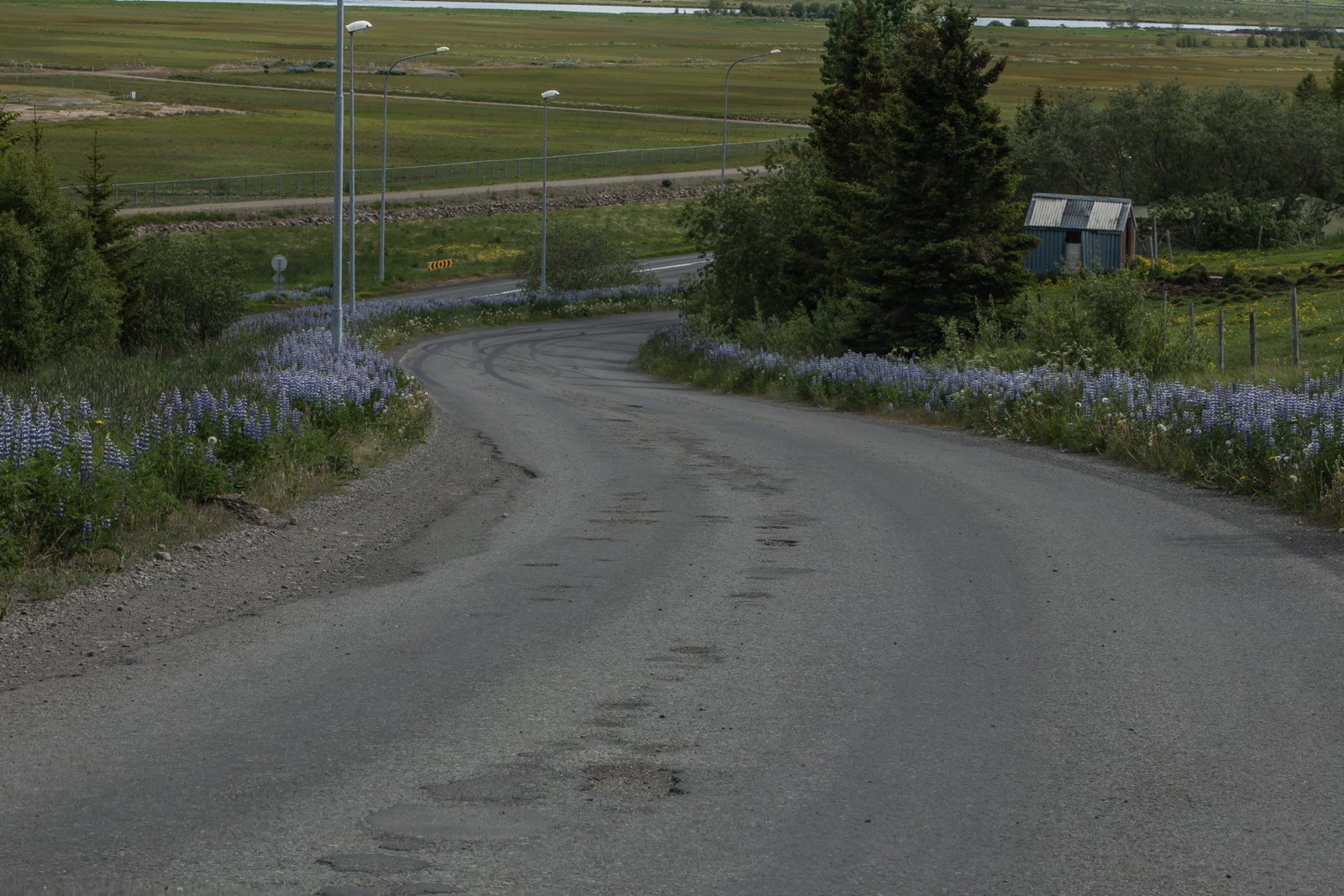 Lúpína og kerfill eru að sækja í sig veðrið á landamærum Krossanesborga.