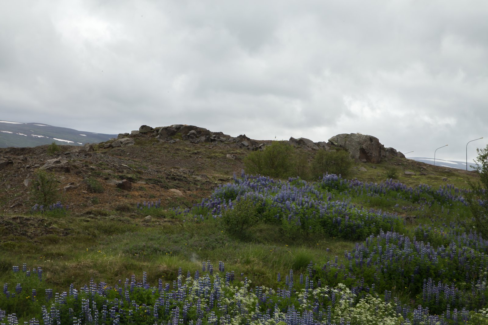 Lúpína og kerfill eru að sækja í sig veðrið á landamærum Krossanesborga.